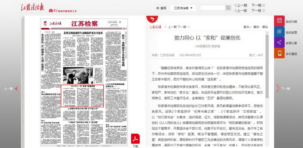 张家港市检察院还充分发挥家庭“大后方”作用,常态化开展家访、谈心谈话活动,了解干警思想动态、生活作风、社交情况,关心其生活中需要组织帮助解决的问题和困难。在节假日或重点时间节点,向全体干警家属寄送家风建设倡议书,营造风清气正的家庭氛围,筑牢家庭廉洁防线。