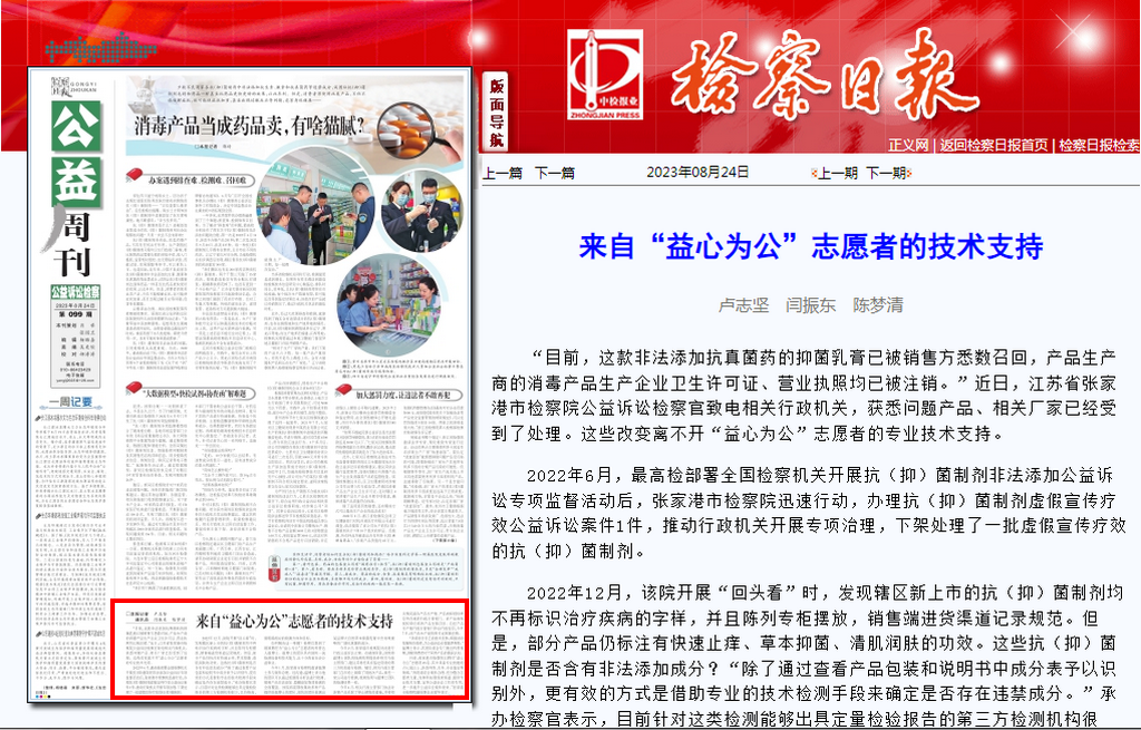 “目前,这款非法添加抗真菌药的抑菌乳膏已被销售方悉数召回,产品生产商的消毒产品生产企业卫生许可证、营业执照均已被注销。”近日,江苏省张家港市检察院公益诉讼检察官致电相关行政机关,获悉问题产品、相关厂家已经受到了处理。这些改变离不开“益心为公”志愿者的专业技术支持。