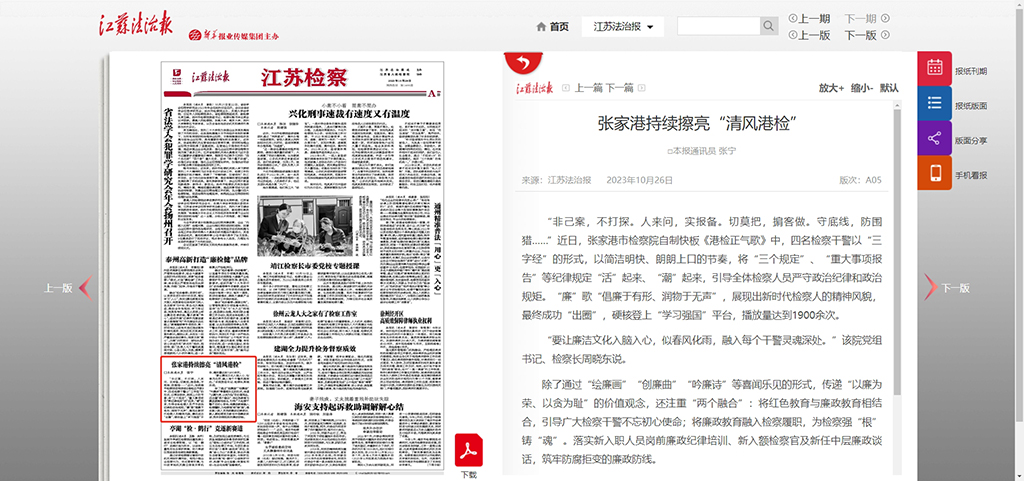 “非己案,不打探。人来问,实报备。切莫把,掮客做。守底线,防围猎……”近日,张家港市检察院自制快板《港检正气歌》中,四名检察干警以“三字经”的形式,以简洁明快、朗朗上口的节奏,将“三个规定”、“重大事项报告”等纪律规定“活”起来、“潮”起来,引导全体检察人员严守政治纪律和政治规矩。“廉”歌“倡廉于有形、润物于无声”,展现出新时代检察人的精神风貌,最终成功“出圈”,硬核登上“学习强国”平台,播放量达到1900余次。