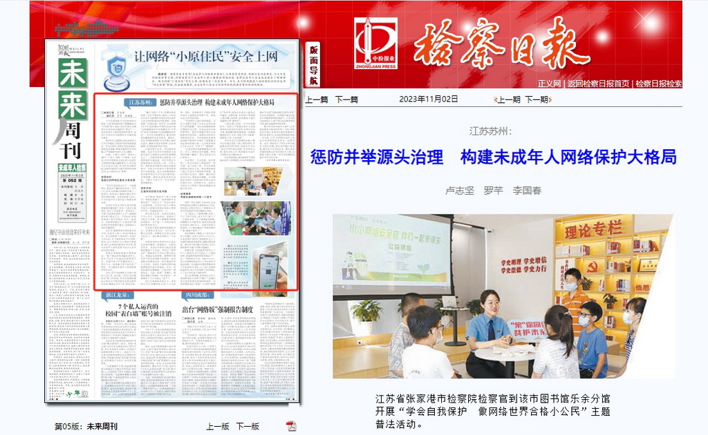 江苏省张家港市检察院检察官到该市图书馆乐余分馆开展“学会自我保护做网络世界合格小公民”主题普法活动。