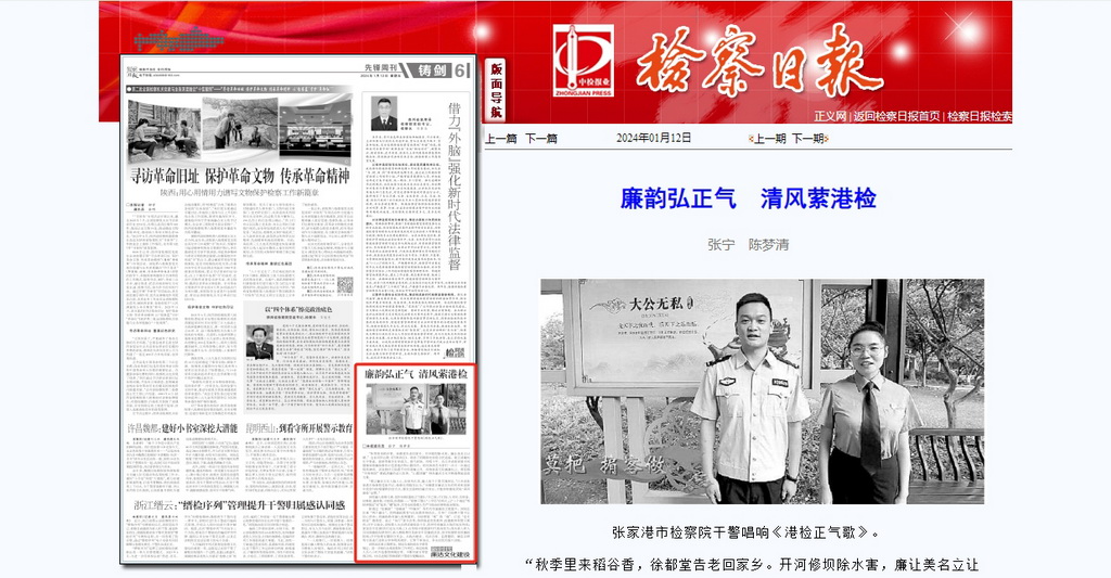 张家港市检察院干警唱响《港检正气歌》。