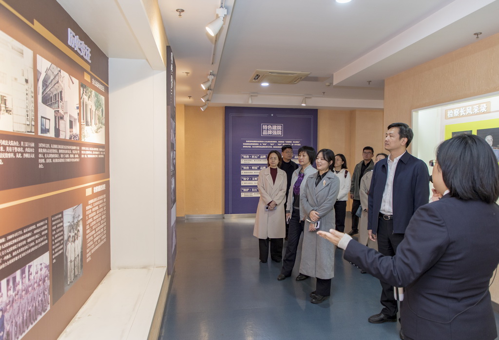 蒋苏淮主任一行首先参观了张家港市检察院院史陈列馆、党建馆,随后,双方开展座谈交流。党组书记、检察长周晓东,党组副书记、副检察长韩广强,党组成员、政治部主任吴铃,党组成员、检委会专职委员王友艳及相关职能负责同志参会。检校双方围绕实践教学、案例研究、课题合作等进行了深入探讨,就推动检校资源深入融合、协同发展达成了初步共识。